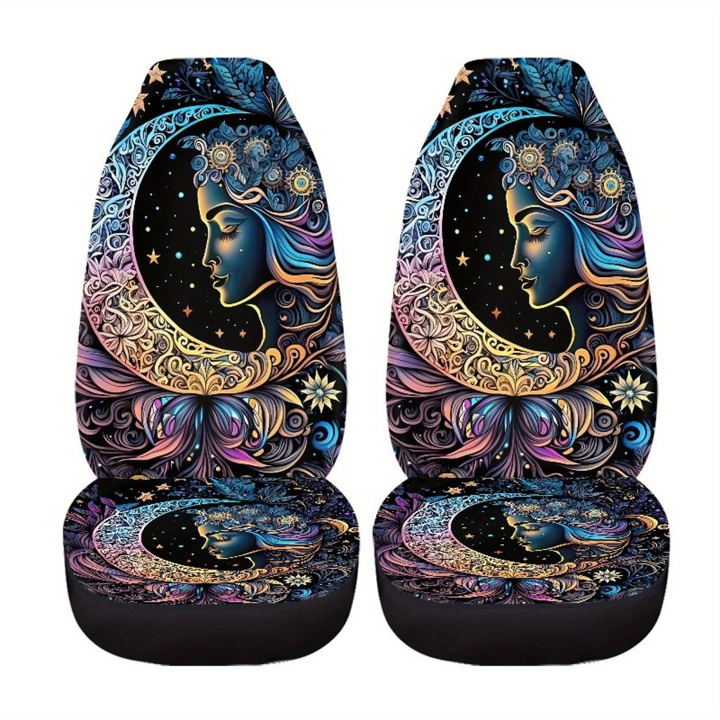 2-teilige Boho-Kunst Stern Mond Autositzbezüge für Männer und Frauen, waschbare Vordersitzschoner für SUVs