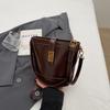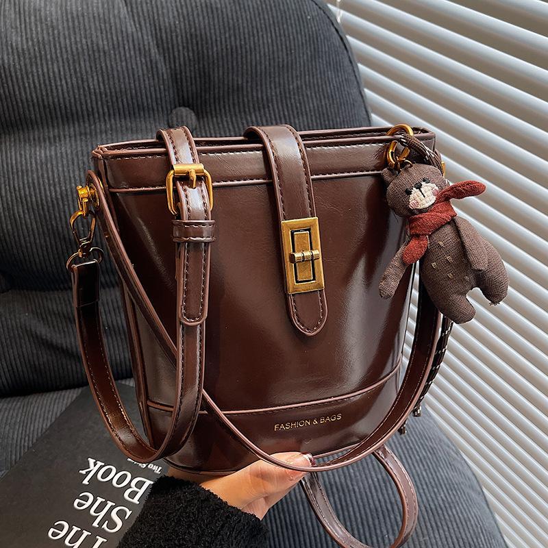 Fashion oil wax leather high texture hand carry bucket bag women's light luxury commuter messenger bag