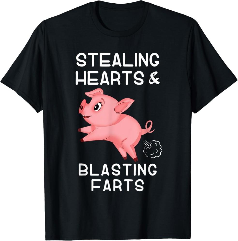 Lustiges Furzendes Schwein T-Shirt mit der Aufschrift 'Stealing Hearts and Blasting Farts'