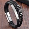 Geflochtenes Seil gewebt schwarzes Leder Herren Armbänder Punk Stil Edelstahl Armreif für Freund Charme Modeschmuck Geschenke