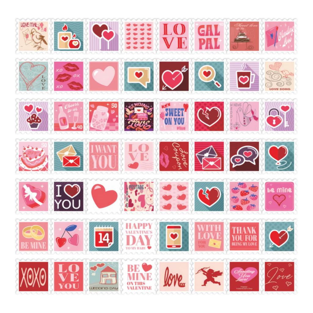 56 New Sweet Valentine's Day Stamps, Decorative Stickers, Journal Stickers, And Luggage Stickers 1. **Purpose:** This 56-sheet Valentine's Day sticker set includes sweet designs. Perfect for decorating diaries, notebooks, suitcases, phones, and water bottles—the coating makes it suitable for outdoor use. The removable adhesive leaves no residue, making re-attachment easy. It perfectly blends a atmosphere with DIY personalization, making it ideal for couples and craft enthusiasts.