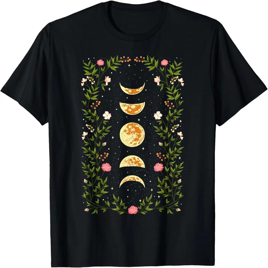 Cottagecore Witchy Vintage Mondphasen Blumen T-Shirt