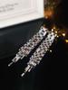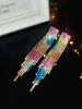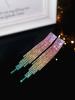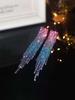 Schwarze Ohrhänger mit glänzenden Diamantquasten mit Farbverlauf