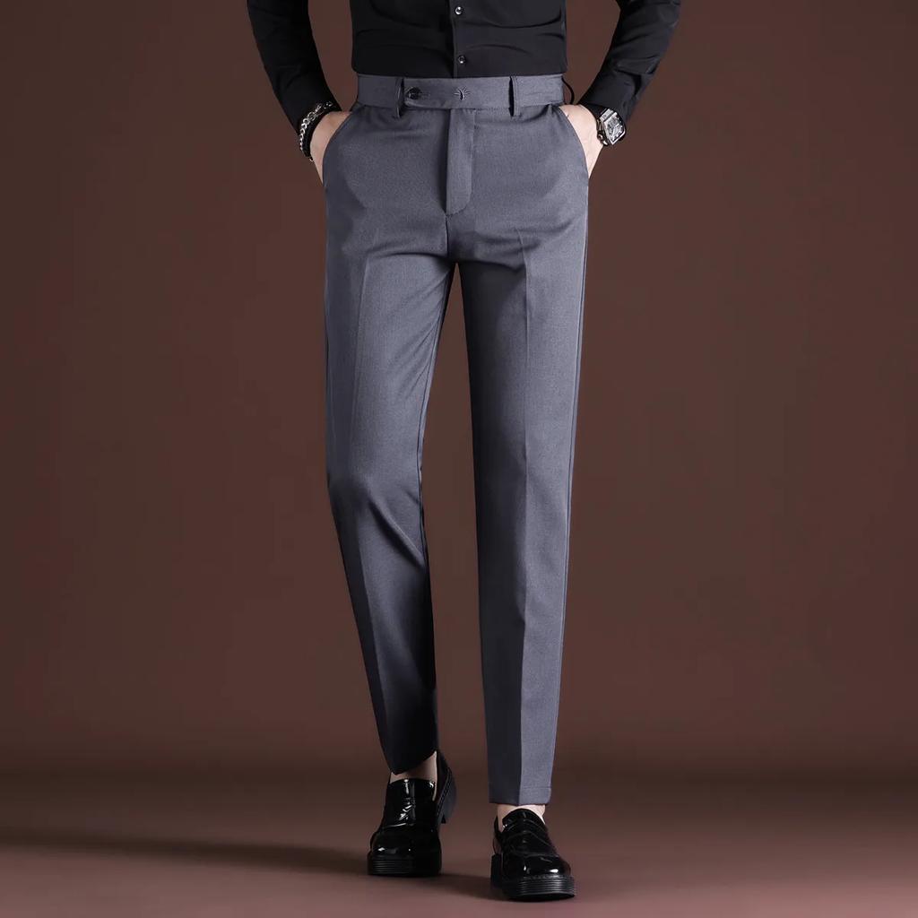Men Stretch Solid Black Smart Casual Pants Mens Trousers Office Quick Dry Suit Pants New Spring Autumn Korean Straight Pants