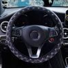 PU leather textured diamond pattern embroidered car rimless steering wheel cover 37-38CM car decorative item for all season