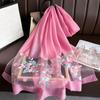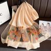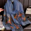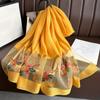 Elegant Floral Embroidered Silk Scarf For Women, Stylish Sunscreen Beach Shawl With Beaded Trim, Bohemian Windproof Must-Have