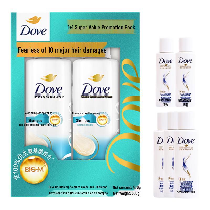 Discover comprehensive hair care with the Dove Nourishing Hydrating Deep Clean Hair Care Set. This generous set is specifically formulated for normal hair and various scalp types, offering deep cleansing and essential nourishment. It effectively targets dandruff while infusing your hair with vital hydration, leaving it feeling incredibly soft, healthy, and refreshed. The set includes 400g and 380g bottles of nourishing hydrating shampoo, alongside five 100g enriching essence bottles for a complete routine.