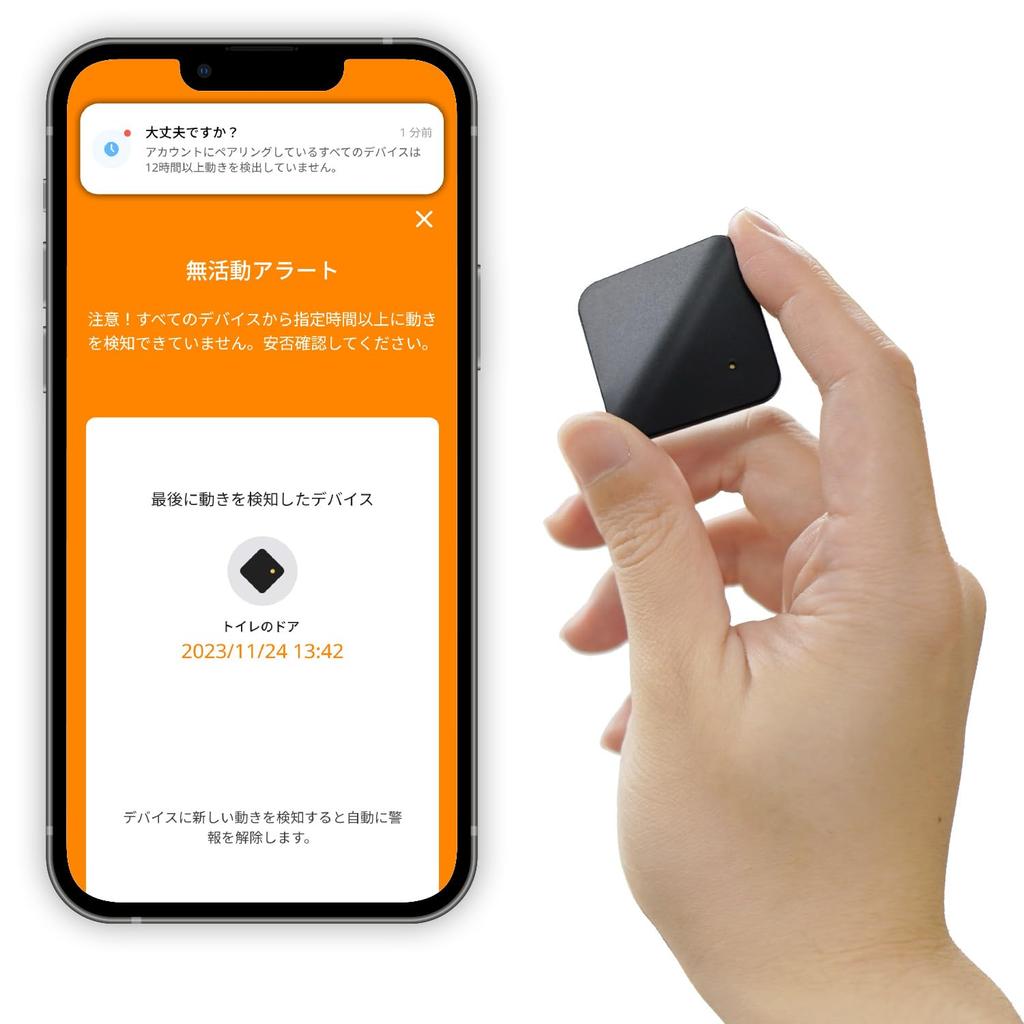 A small motion sensor for keeping an eye on elderly people living alone. Alerts only when there is no movement. No installation required. No fees.