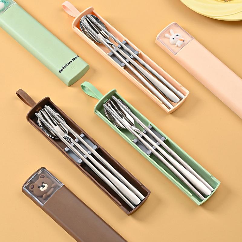 1 Stück Edelstahl Geschirr Set Einfachheit Essstäbchen Löffel Gabel Anzug Cartoon Outdoor Tragbar Reise Besteck Kawaii Niedliches Besteck