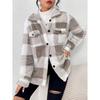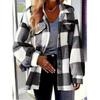 Herbst Plüsch Winterjacke Damen Karoprint Jacke Dick Plüsch Warm Print Langarm Mantel Winter Locker Umlegekragen Damenmantel