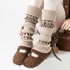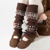 Baumwoll-Sockenüberzieher für Damen Herbst und Winter Fair-Isle-Waldstil Frotteesocken Warm und Dick Retro Grau Rautenmuster Wadenstulpen