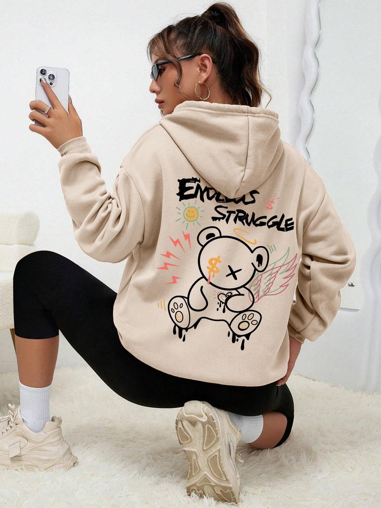Graffiti Little Bear With Wings Print Hoodies Women Autumn Casual Hoodie Street Fashion Hoody Autumn Warm Fleece Pullover Female