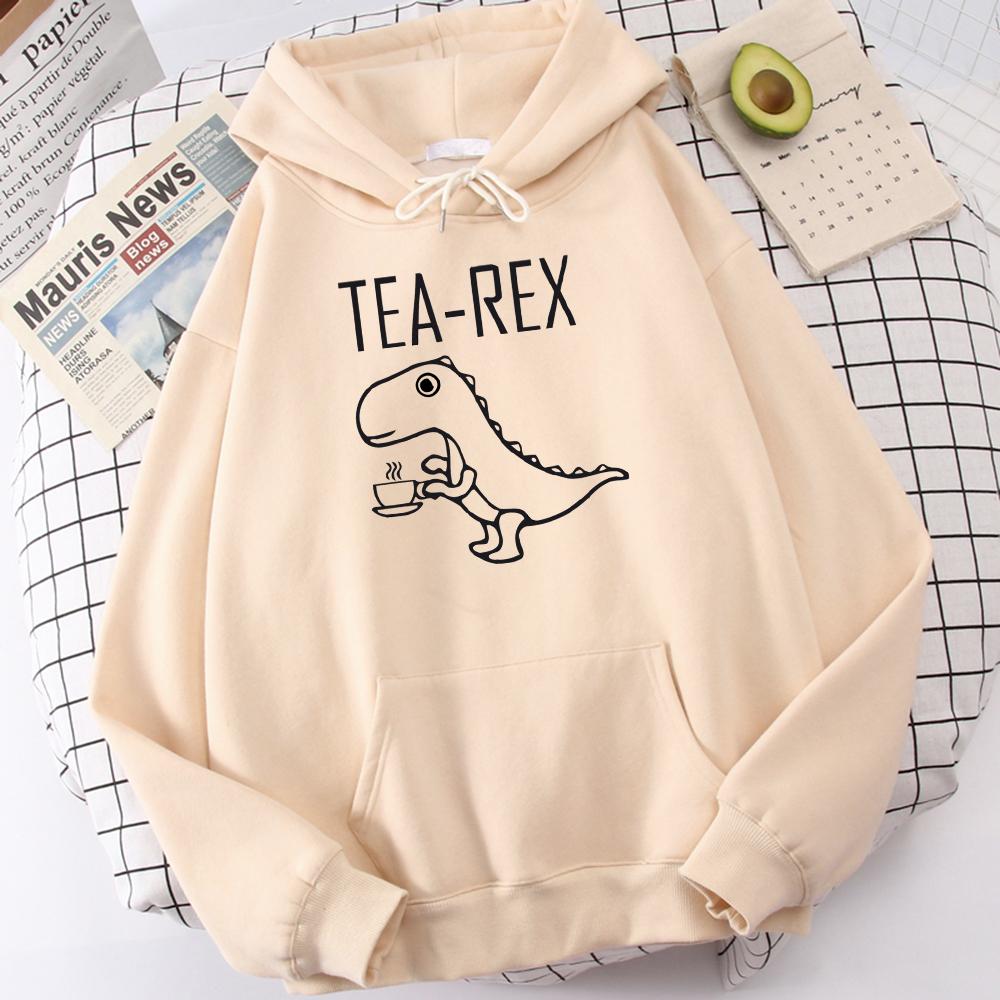 Tea Rex Lustiger Dinosaurier Kaffee trinken Print Hoodies Herren Herbst Übergroßer Hoodie Einfache Fleece-Sweatshirts Street S-Xxl Trainingsanzug