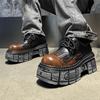 Damen Sneaker Neuer Punk-Stil Damenschuhe Gothic Knöchel Rockstiefel Schnürschuhe Absatzhöhe Plateauschuhe Frau Metalldekor