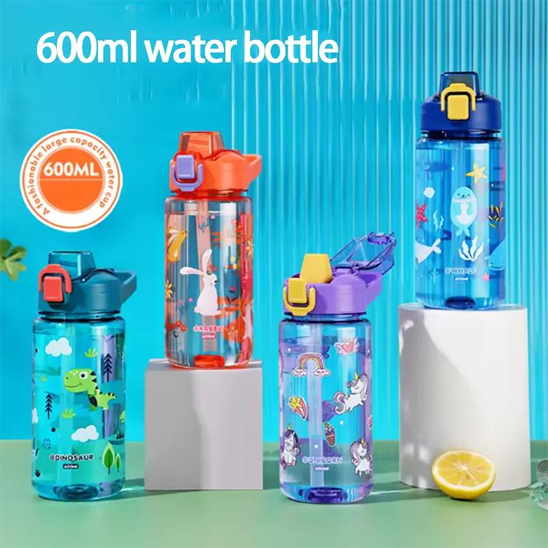 600ML Kinder Cartoon Tier Wasserflasche Tasse mit Strohhalm Tragbare Studenten Anti-Fall Wasserflasche Kleinkinder Getränkekessel