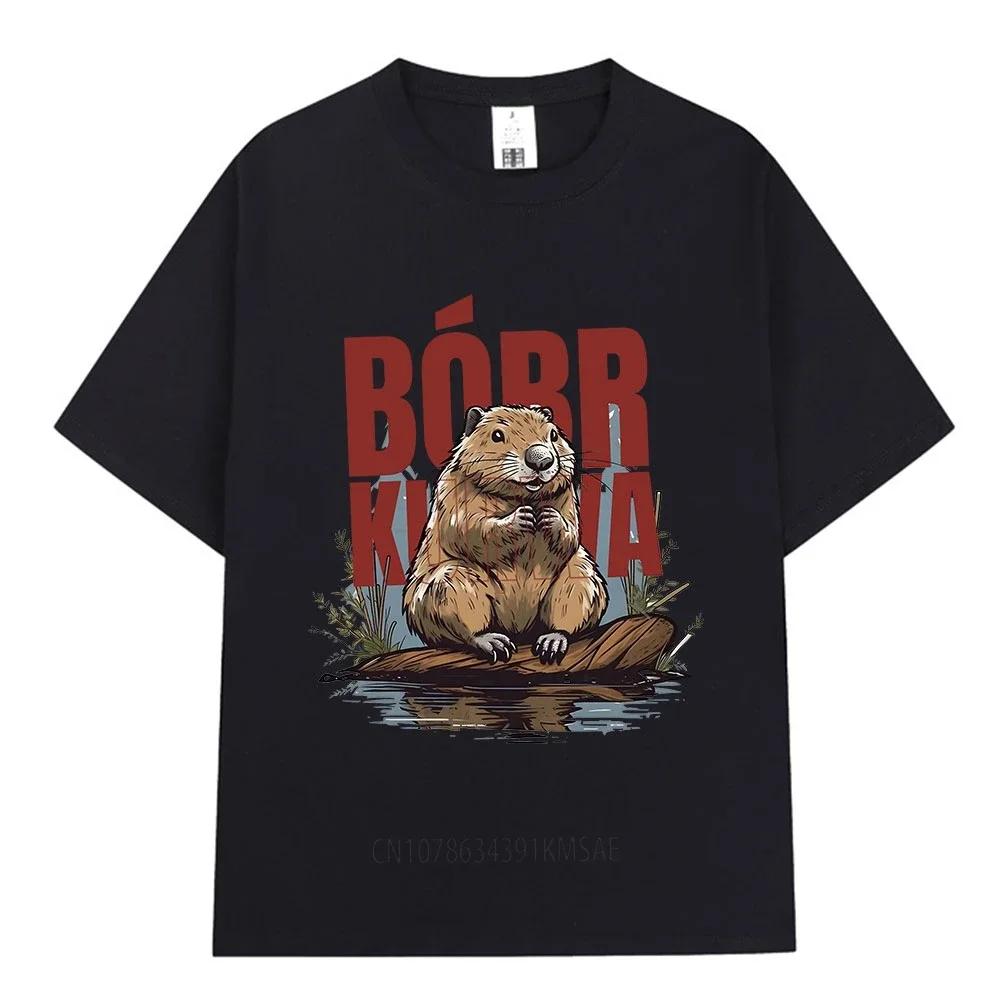 Bober Kurwa Bobr T-shirt Funny Beaver Meme Graphic T Shirts Men Women Cotton Casual Loose Short Sleeve T-shirts Tops Streetwear