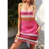 Features: Colorful Stripes, Knitted Cut out Dress, Beach Dress, Short Dress, Backless, Suspender Dress