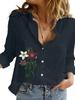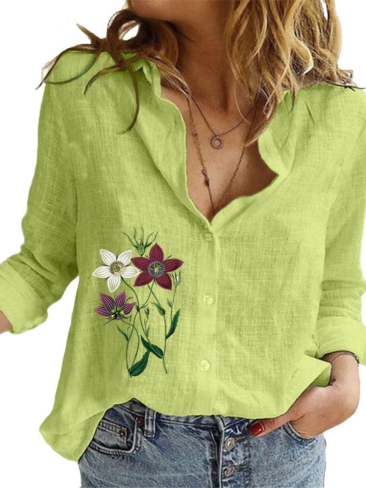 Damenmode Baumwolle Leinen Hemd Frühling&Sommer Lockeres Oberteil Damen Lässige Bluse mit Blumendruck