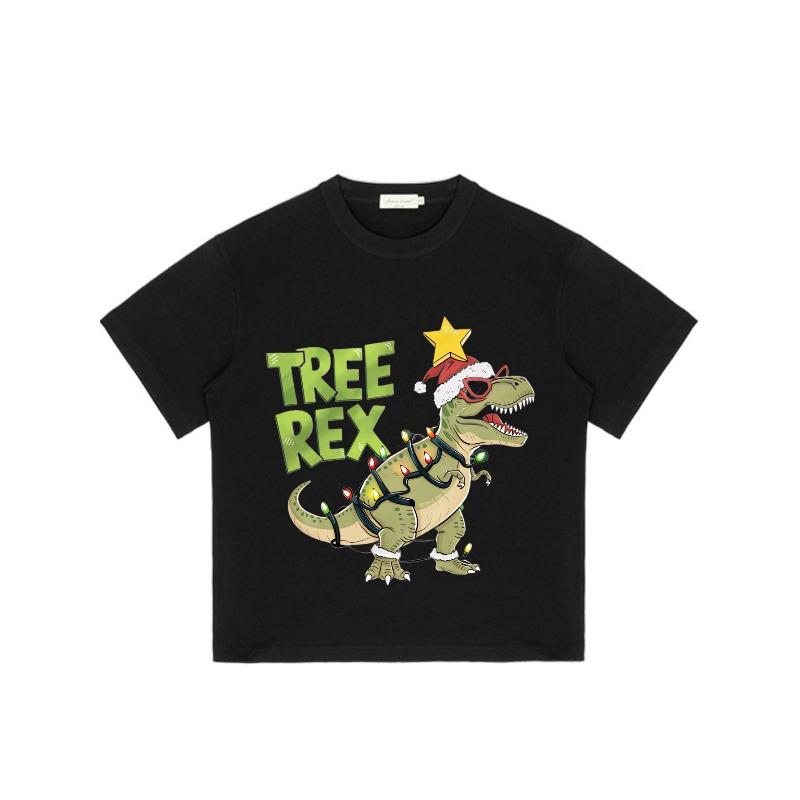 T-Shirt Schwarzer Baum Rex Dinosaurier Weihnachtsbeleuchtung Weihnachtsmannmütze Druck Freizeitkleidung für Männer und Frauen Feiertagsparty Outfit