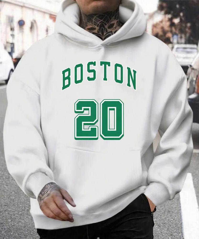 Lässiger Boston No20 Bedruckter Warmer Hoodie für Männer und Frauen Streetwear Herbst/Winter Bequemer Hoodie, Farbverblassungsbeständig, Alltagskleidung