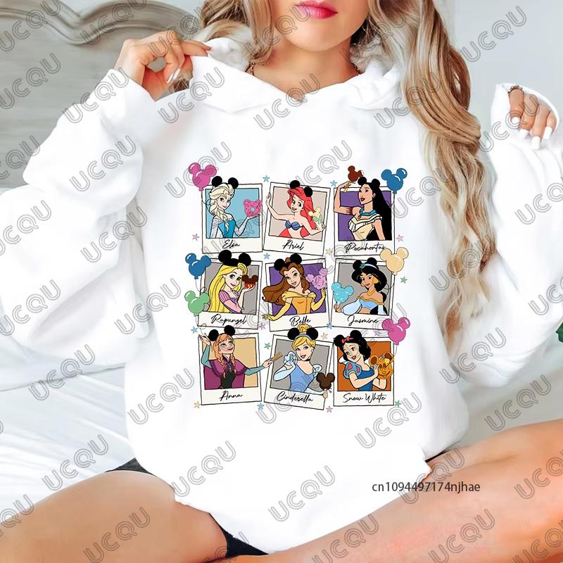 MINISO Disney Prinzessin Cinderella Elsa Arielle die kleine Meerjungfrau Schneeprint Damen Hoodies Lässige Langarm Pullover Sweatshirts