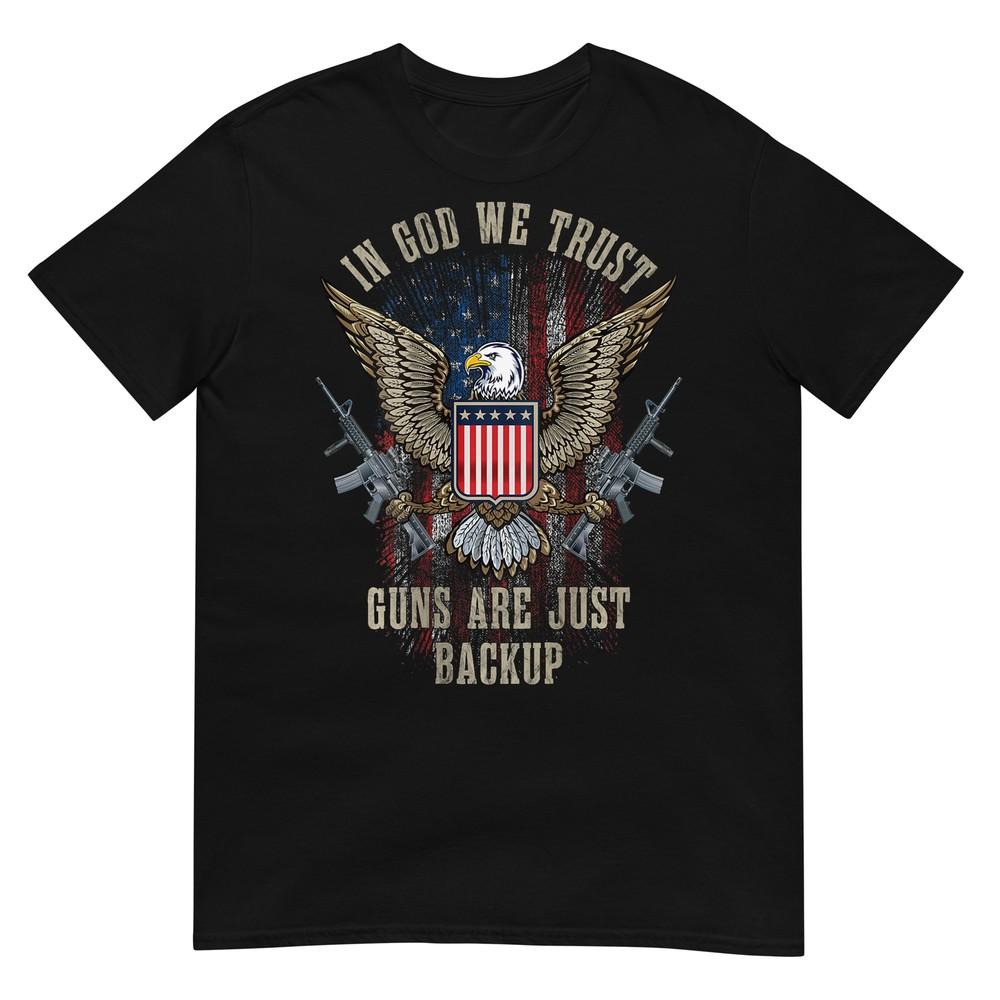 In Gott vertrauen wir Waffen sind nur Backup Amerikanische Flagge T-Shirt