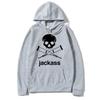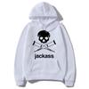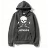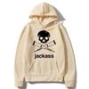 Schwarzer Hoodie mit Jackass-Logo-Print, Streetwear-Stil, lässiges Sweatshirt, modisch für Damen und Herren, Vintage-Look, locker geschnitten, für Herbst und Winter.