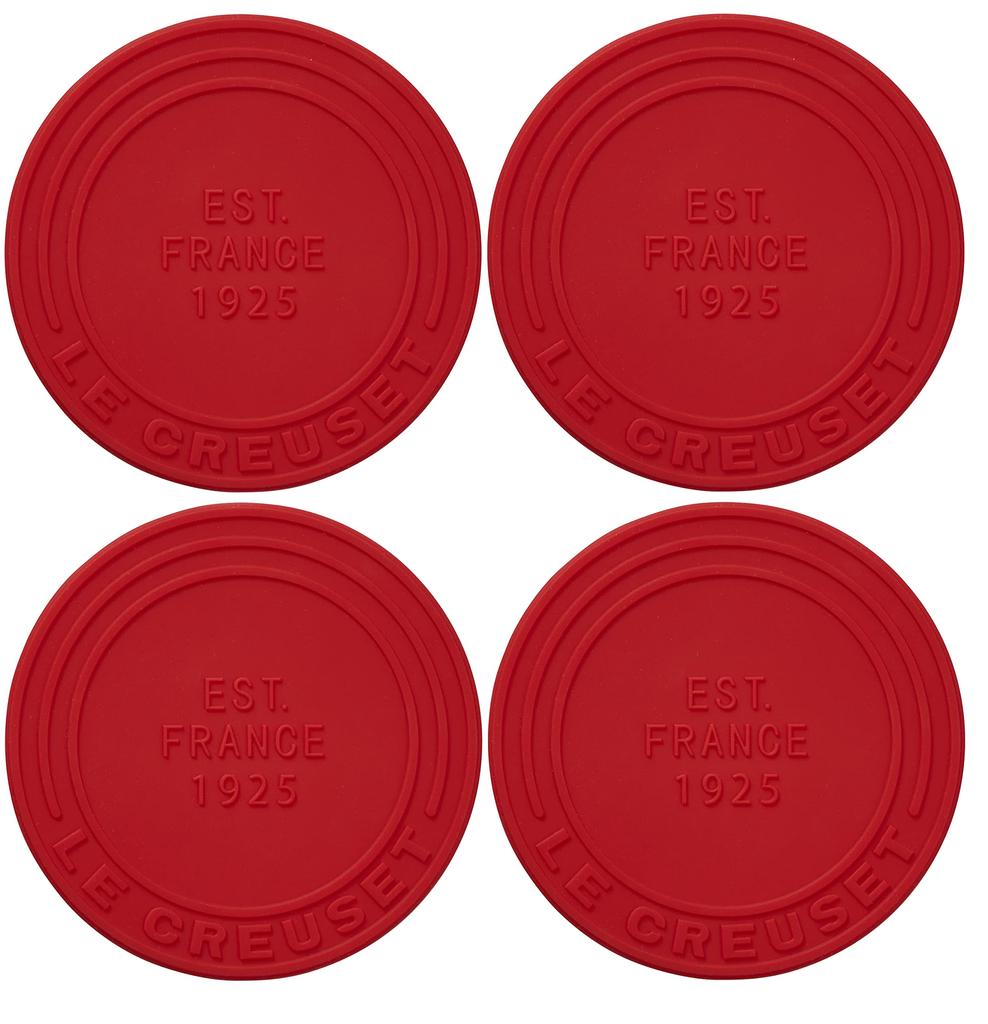 Le Creuset Silicone Coasters, 4-Pack, Cherry Red, Heat and Cold Resistant, Non-Slip, for Drinks [Official Japanese Product]
