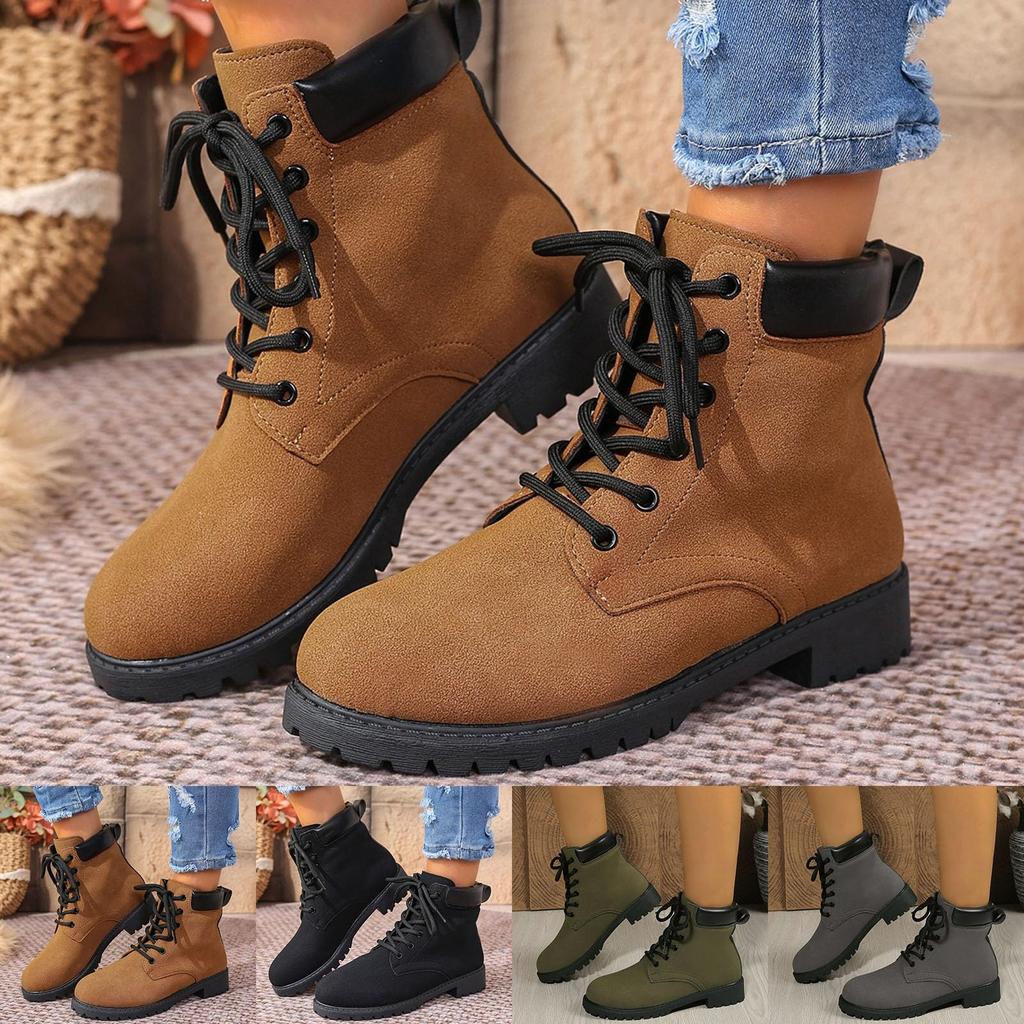 ZSpzx Damenstiefel Uni Wildleder Profilsohle Klobige Blockabsätze Runde Zehenpartie Kurze Lässige Stiefeletten Reiten Stilvoll Wandern Komfort Retro - Schuhe