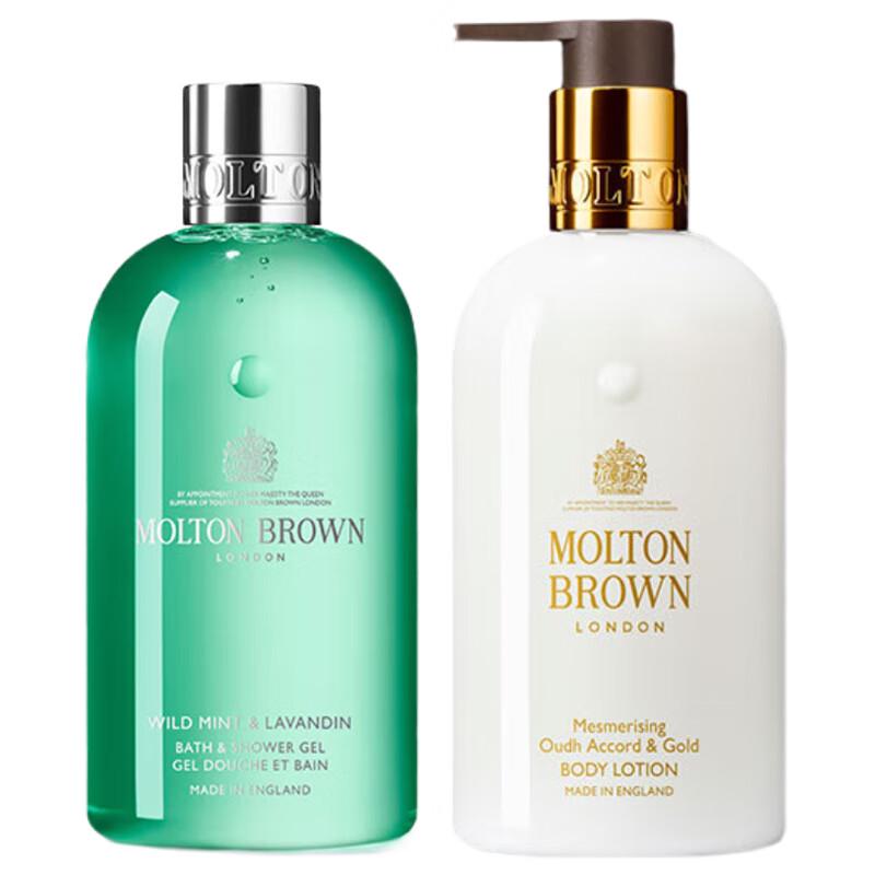 Molton Brown Wildminze & Lavendel Duschgel & Oud & Gold Körperlotion Set
