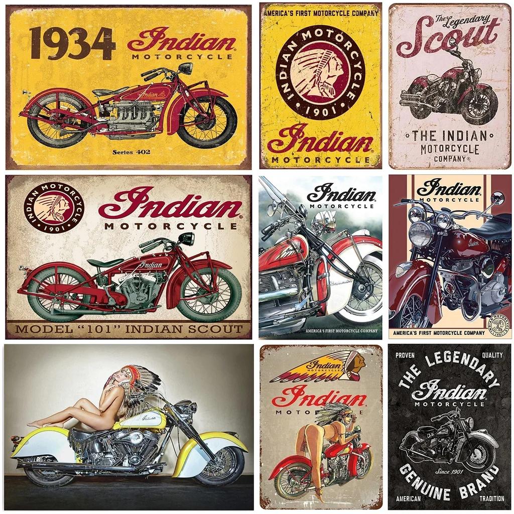 Metallblechschilder Indian Motorcycles Scout Gegr. 1901 Dekoration Eisen Farbe G Metall Dekorative Wandkunst Vintage Schilder Garage Club Bar