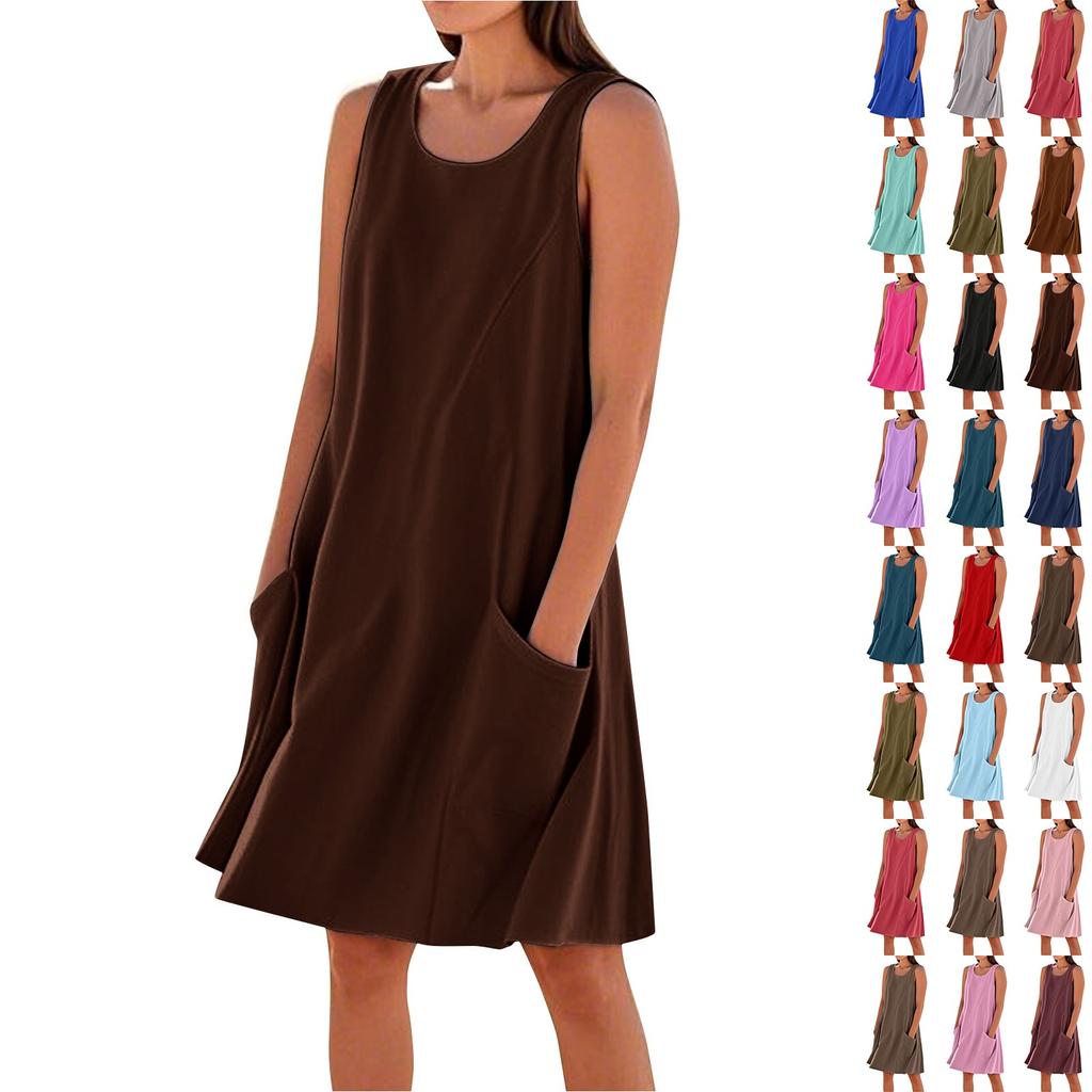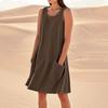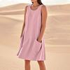 Sommerkleider für Damen, lockerer Strandurlaub, lässig, ärmellos, Sommerkleider mit Taschen, Tankkleid