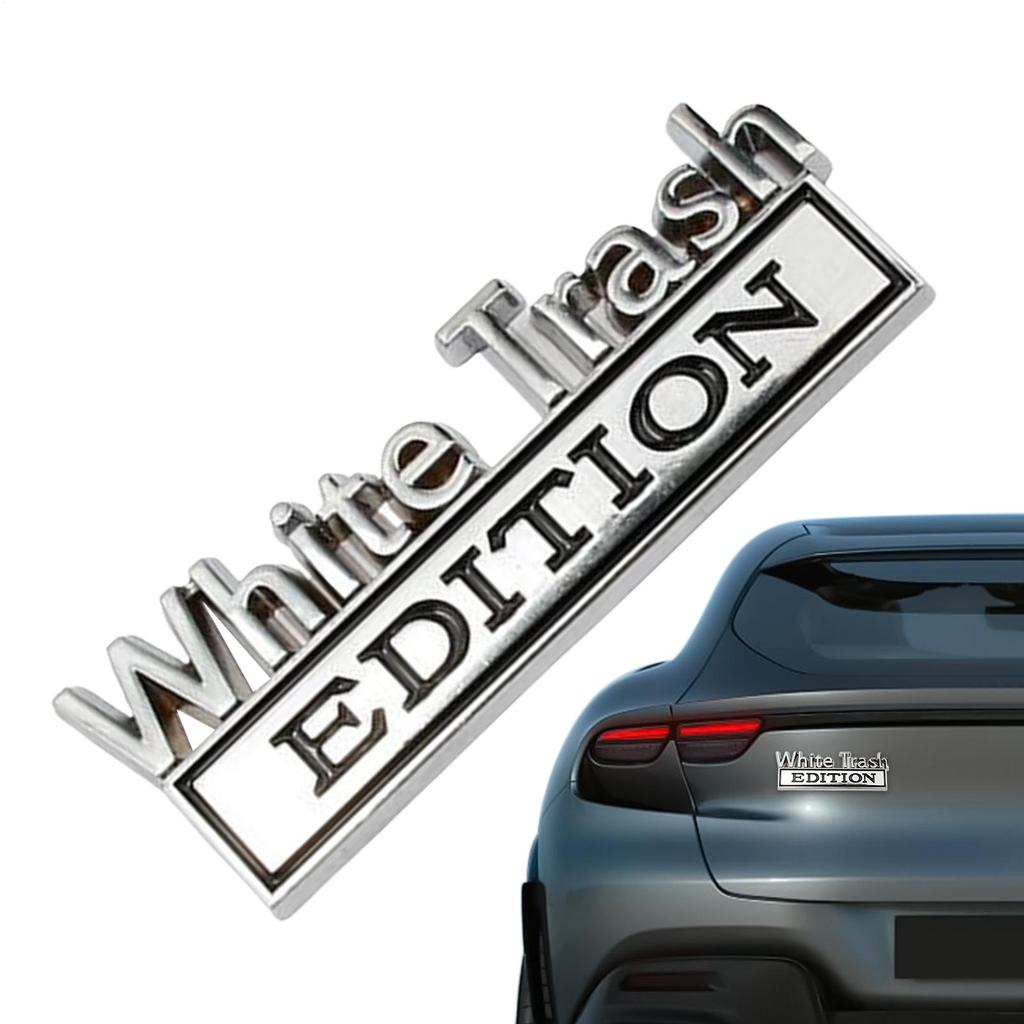 White Trash Edition Metal Car Emblem Decal 3D Metal Emblem Car Sticker Bumper Sticker Waterproof Car Emblems And Badges