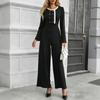 Wind Jumpsuit 2025 Neu Elegant Temperament Kontrastierend Langärmlig Zweireihiger Jumpsuit für Damen