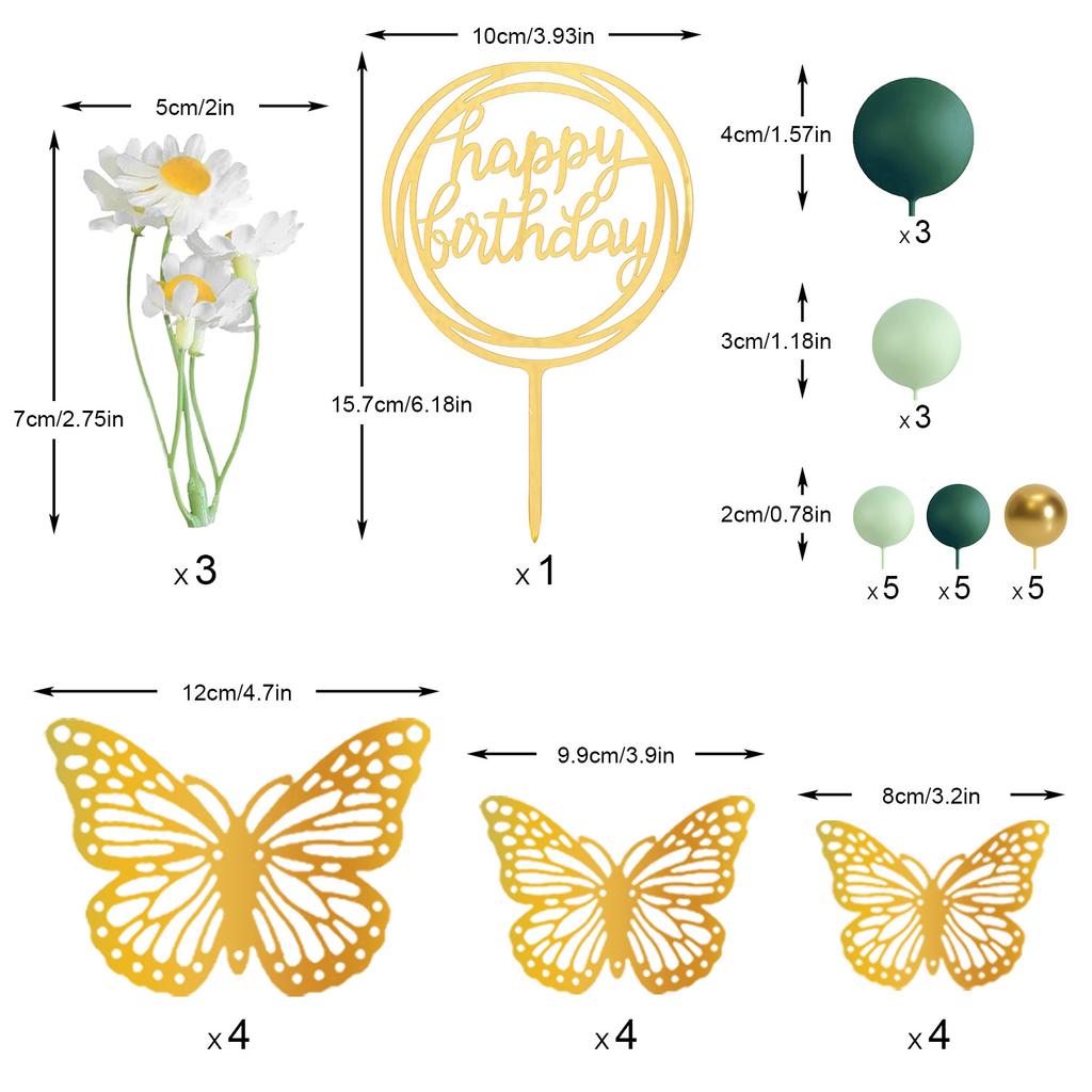 Grüne Kugeln Kuchenaufsatz Schmetterling Kuchendekorationen Happy Birthday Kuchenaufsatz für Hochzeit Babyparty Gänseblümchen Geburtstag