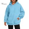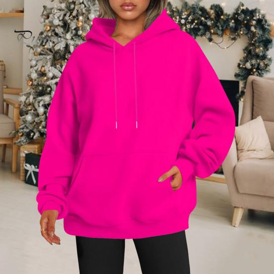 Dieser Damen-Hoodie verfügt über ein einfarbiges Design mit Kapuze und großer Tasche sowie einen mittellangen Schnitt. Der lockere Saum sorgt für eine schmeichelhafte Silhouette, indem er unerwünschte Wölbungen verdeckt und so einen schlank machenden Effekt erzeugt.