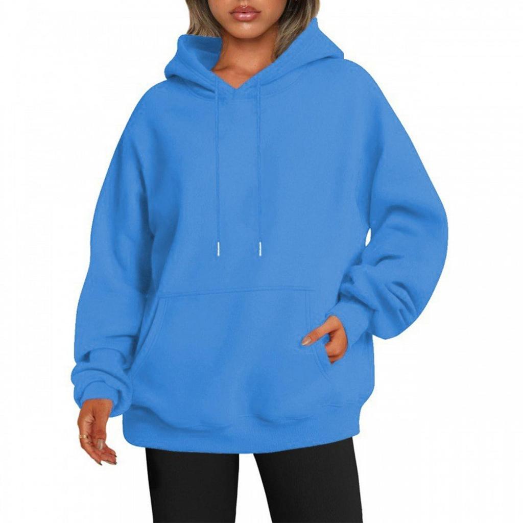 Damenmode, einfarbig, mit Kapuze, losen Steckerärmeln, Kordelzug, lockeres Sweatshirt