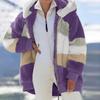 Damenmode Spleißen Winter Lose Plüsch Langarm Reißverschlusstasche Kapuzenmantel