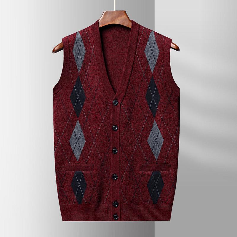 Neue Herren Strickjacke mit Knöpfen Weste für Herbst und Winter, Freizeit V-Ausschnitt Weste locker für Mittelalte und Ältere