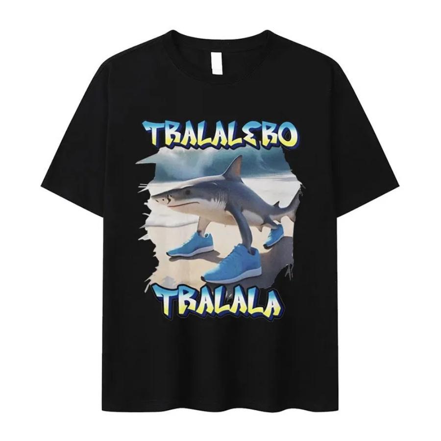 Tralero Tralala Lustiger Hai Meme Druck T-Shirts Herrenmode Hochwertiges Baumwoll-T-Shirt Unisex Sommer O-Ausschnitt Kurzarm T-Shirts