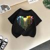 Neues Mädchen Kurzarm Kinder T-Shirt Feuerwerk Aufdruck Vielseitiges Oberteil für mittlere und kleine Kinder Sommermode