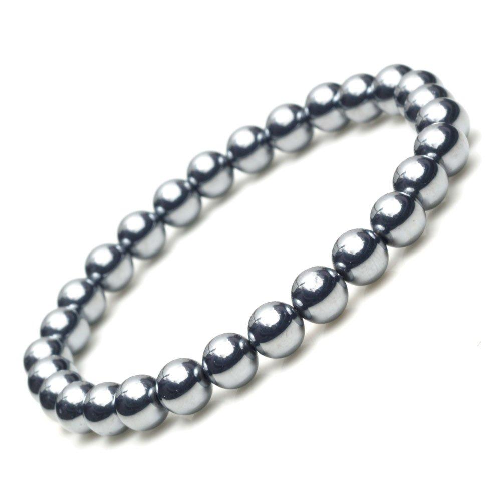 OVER-9 Terahertz Armband, 6mm, Güte A, Offiziell getestet! Kraftstein, Naturstein, Gesundheitsaccessoire, Runde Perlen, Herren- und Damen [16cm]