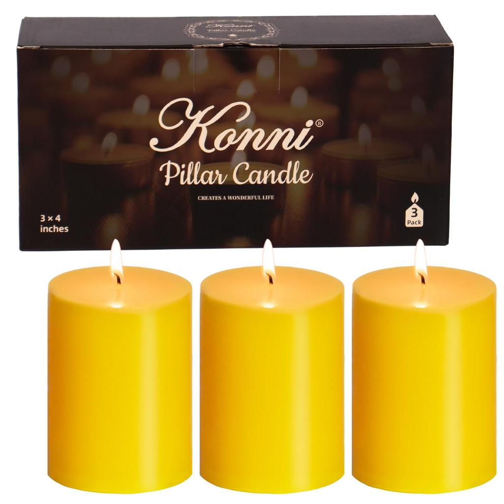 KAMMAK Stumpenkerzen, 3er-Set, 75 mm Durchmesser x 101,6 mm Höhe, Brenndauer: Ungefähr 117 Stunden, Duftlos