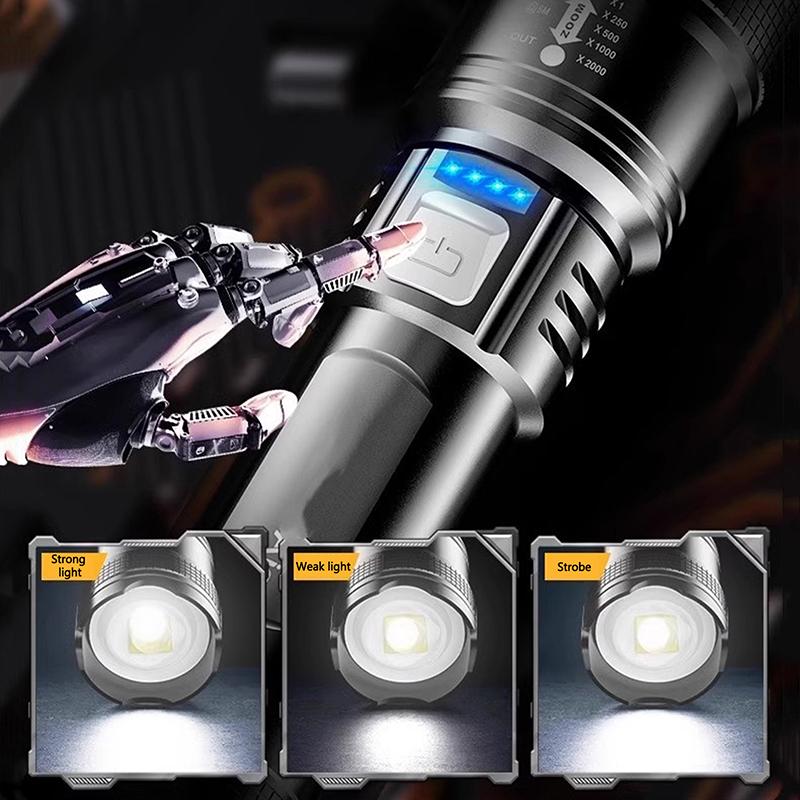Ultra Bright Lantern Super Powerful Led Flashlight Zoom Tactical Torch Built-In Battery Usb Rechargeable Waterproof Lamp