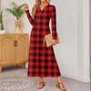 Damen Karomuster Langarm Bequemes Lockeres Kleid Elegantes Kleid