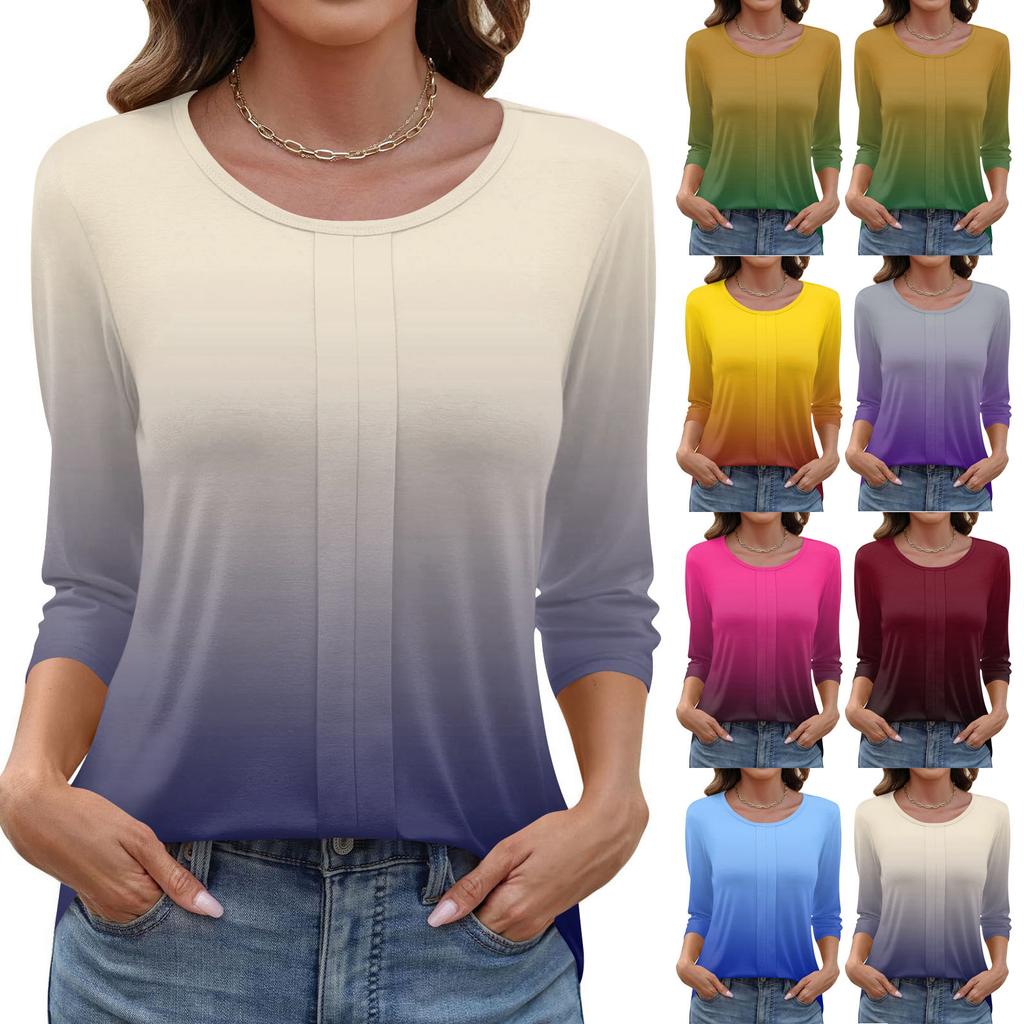 Modisches, lässiges Pullover-Oberteil mit Dreiviertelärmeln und bedrucktem Kragen für Damen