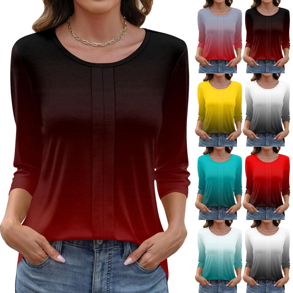 Modisches, lässiges Pullover-Oberteil mit Dreiviertelärmeln und bedrucktem Kragen für Damen
