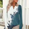 Damen Casual Mode T-Shirt, Vintage Blumendruck, Rundhalsausschnitt, Langarm-Oberteil.