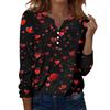 Damen T-Shirt mit Weihnachtsdruck, Knopfleiste, lange Ärmel, für den Alltag, Wochenende, modisch, Basic, V-Ausschnitt, normales Oberteil