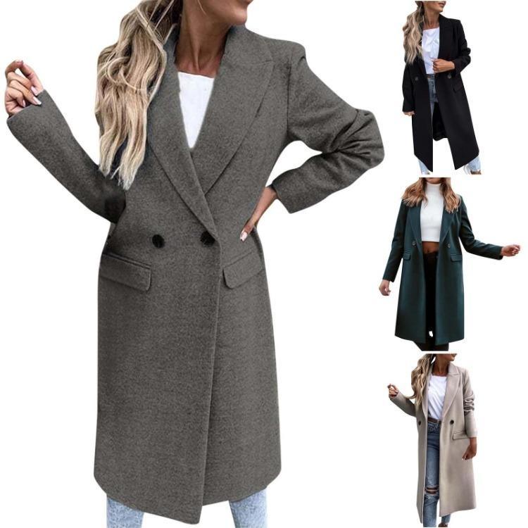 Damen Winter Wollmantel Lässig Locker Revers Gefälschte Tasche Knopf Strickjacke